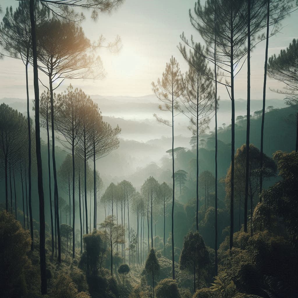 Gue berhenti di satu titik. Di depan gue, hamparan pohon cemara menjulang kayak penjaga setia. Kabut tipis melayang pelan, kayak kapas yang lagi menari di antara batang-batang pohon. Angin lewat, bawa aroma tanah basah dan daun muda. Dan langit waktu itu—gue gak lebay—beneran kayak lukisan. Biru muda di atas, keperakan di bawah, semua nyatu kayak kanvas raksasa buatan alam.