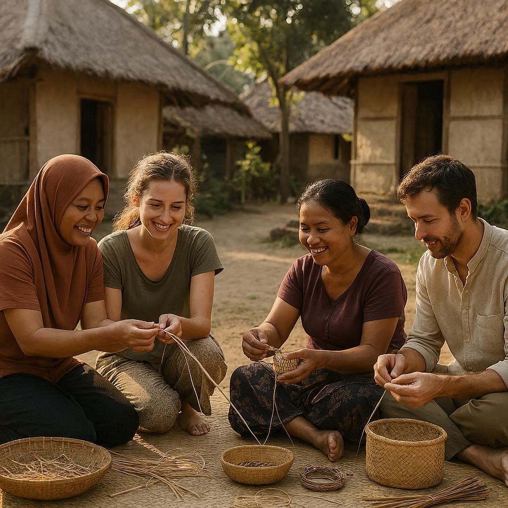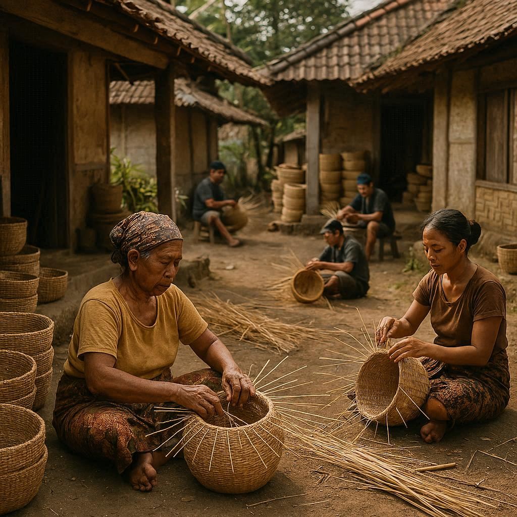 Gue duduk di dekat rumah warga, ngeliat proses kerajinan lokal yang mereka kerjain sehari-hari.