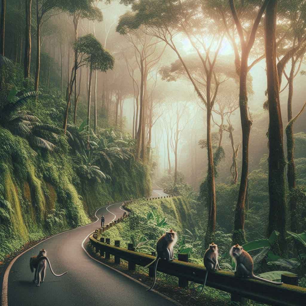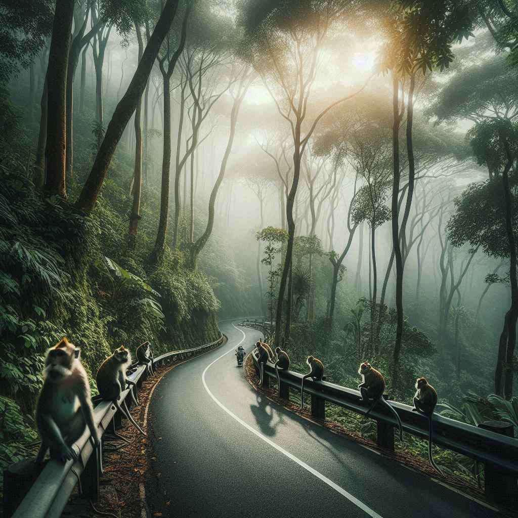 Pas mobil berhenti, dan gue buka kaca, ada satu monyet kecil yang nyamperin sambil merhatiin plastik buah yang gue bawa. Matanya tuh… bukan kayak binatang buas. Tapi juga bukan kayak hewan peliharaan. Lebih kayak… makhluk liar yang udah terlalu sering ngeliat manusia dan tahu gimana cara ngebaca gerak-gerik kita.