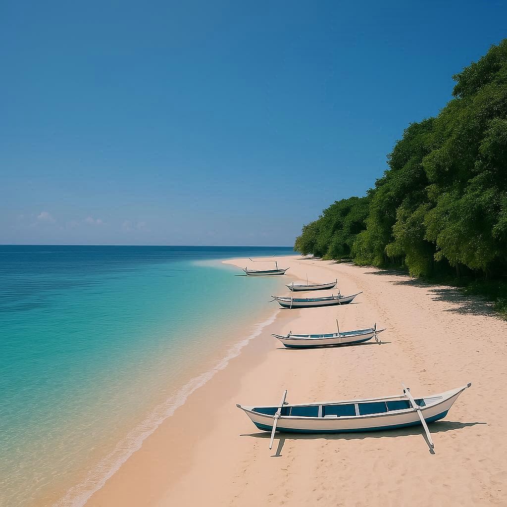 Bayangin aja, pasir putih halus, laut gradasi biru toska, dan cuma ada suara angin sama debur ombak.