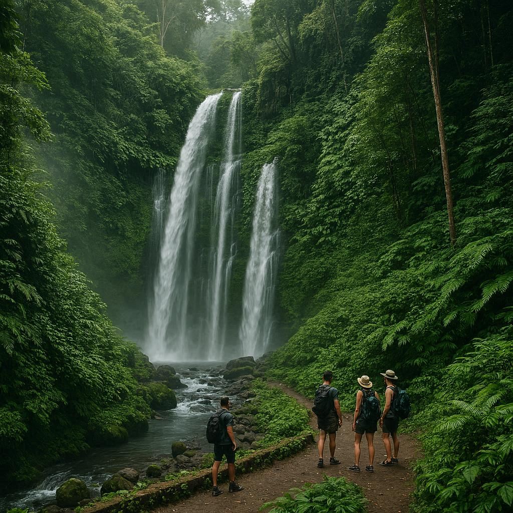 Air terjun indah, hutan yang sejuk, dan pemandangan Gunung Rinjani yang megah bisa dinikmati tanpa harus trekking berat.