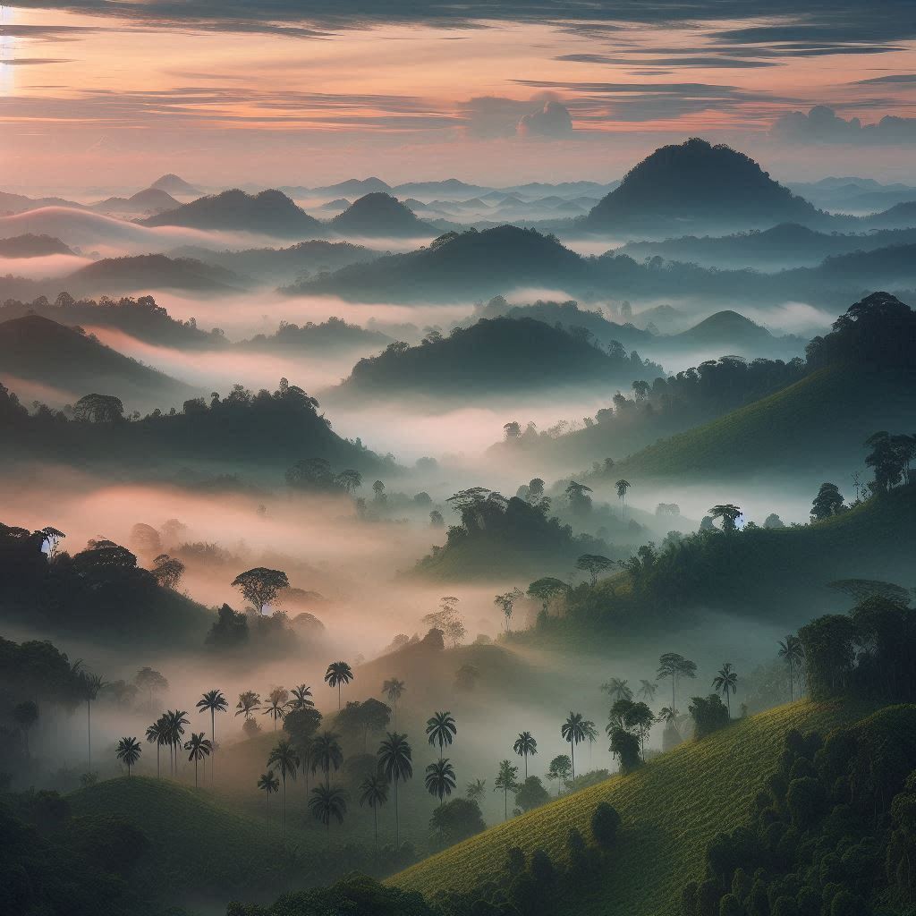 Angin pelan, suara burung dari kejauhan, dan kabut yang pelan-pelan naik.