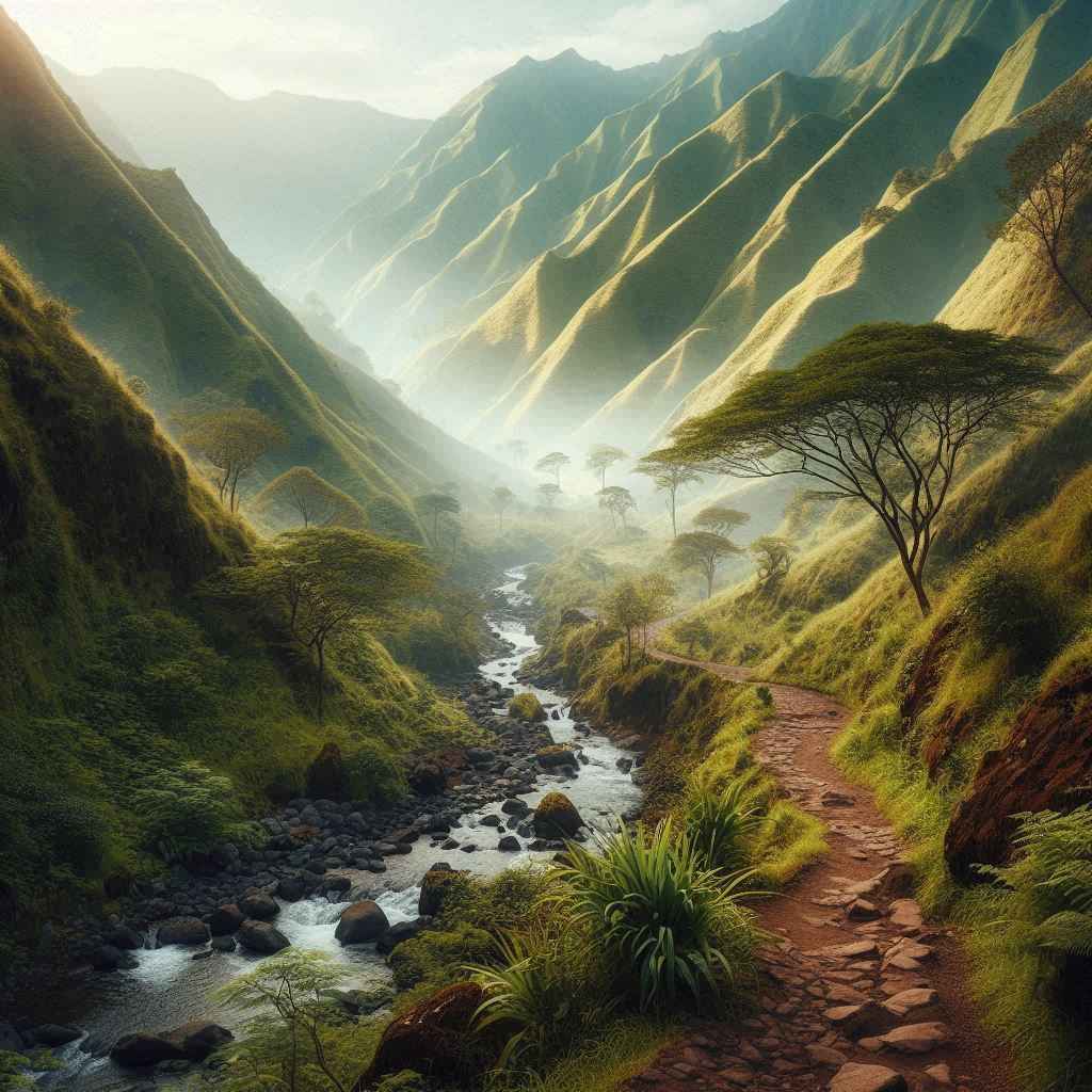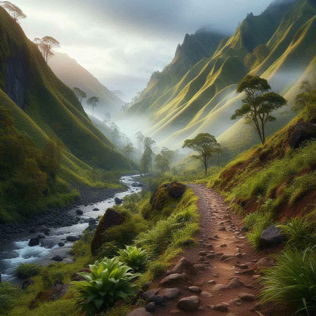 Air terjun kecil di sela tebing, lembah yang dililit kabut, dan suara sungai yang kayak bisikan bumi.