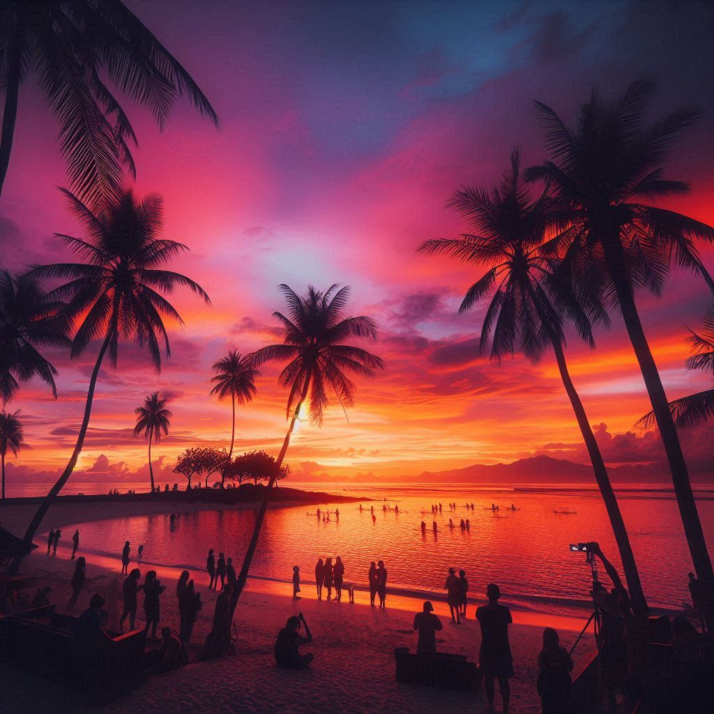 Langitnya pelan-pelan berubah warna, dari biru muda ke jingga, lalu ke ungu lembut. Di kejauhan, siluet Gunung Agung berdiri megah di seberang laut. Lautnya tenang, kayak kaca, mantulin warna langit yang makin lama makin dramatis. Ada sekelompok orang duduk di pasir, ada yang bawa gitar, ada yang cuma bengong sambil pegang kelapa muda. Gak ada yang ribut, gak ada yang tergesa. Semua orang diem, tapi bukan karena sepi—lebih ke… kagum.