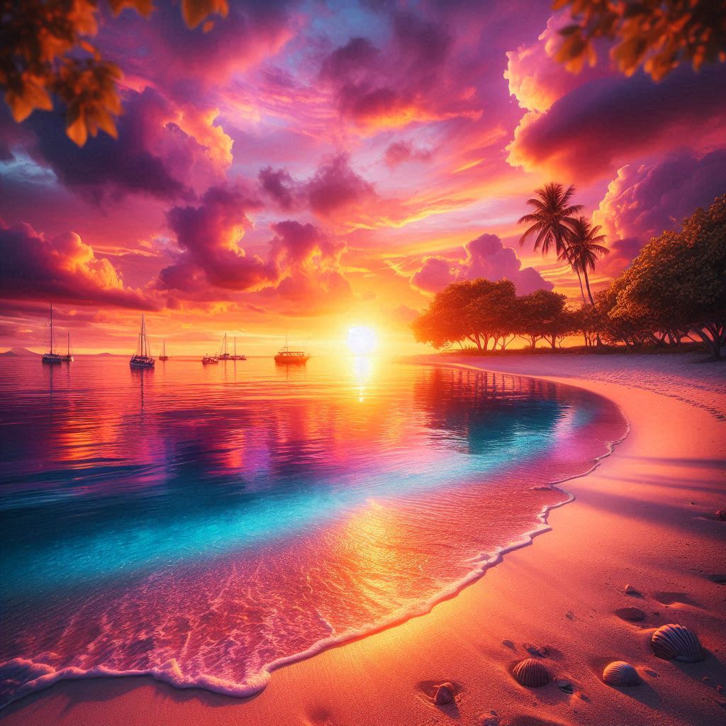 Cuma gradasi dari biru, ke oranye, ke merah muda, terus gelap.